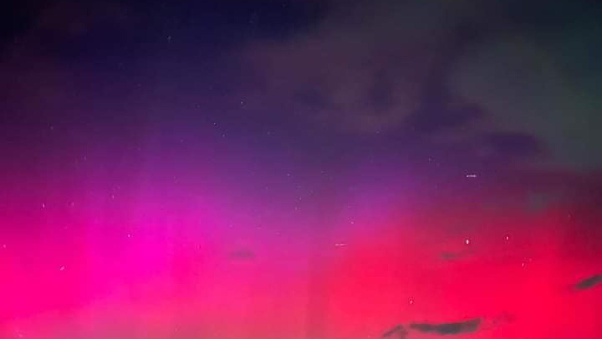 Кадрите показват необичаен пурпурно-червен отблясък в горните слоеве на атмосферата – явление, което се наблюдава значително по-рядко от познатото зелено сияние.