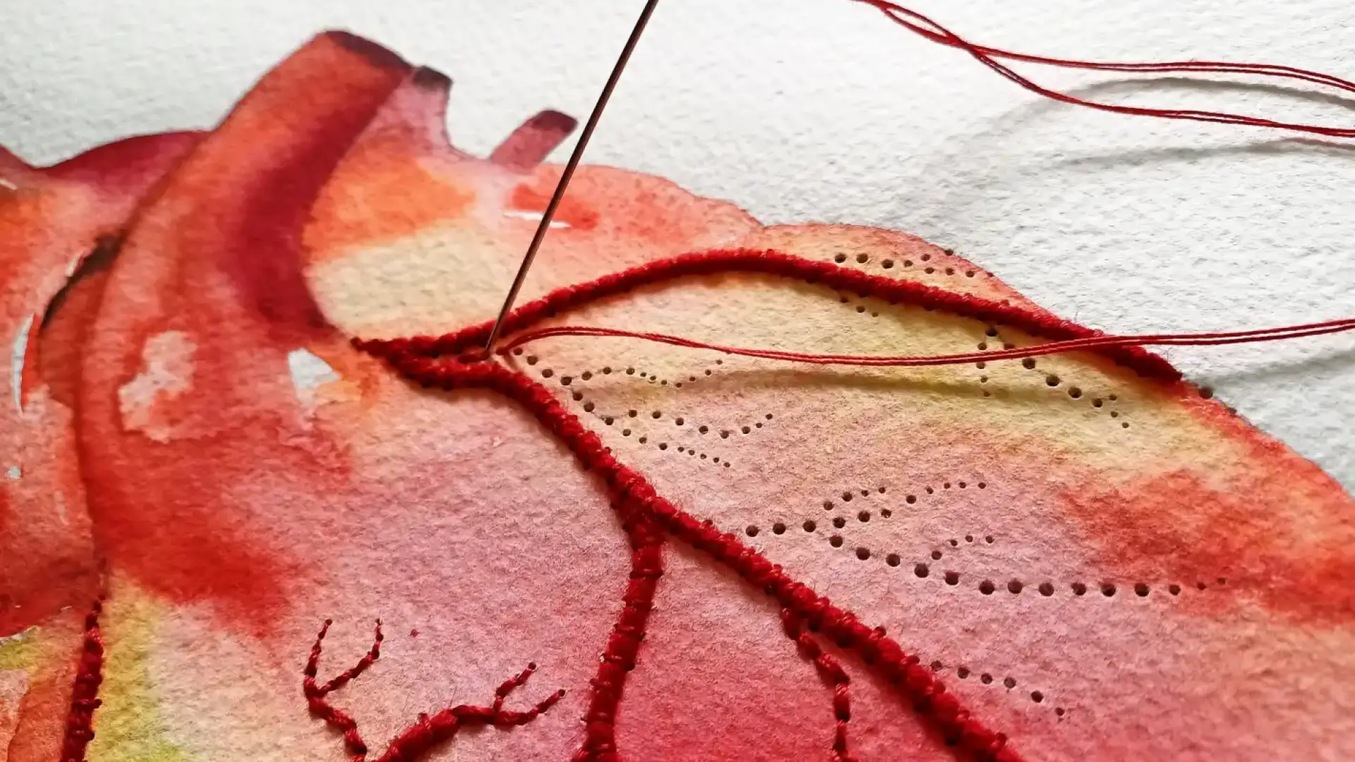 Вдъхновението за моето творчество е чувството на единство, което изпитвам заедно с природата. Съчетах акварел и бродерия, като акцентът е върху бродерията, която изобразява кръвоносната система на различни видове обитатели на земята.